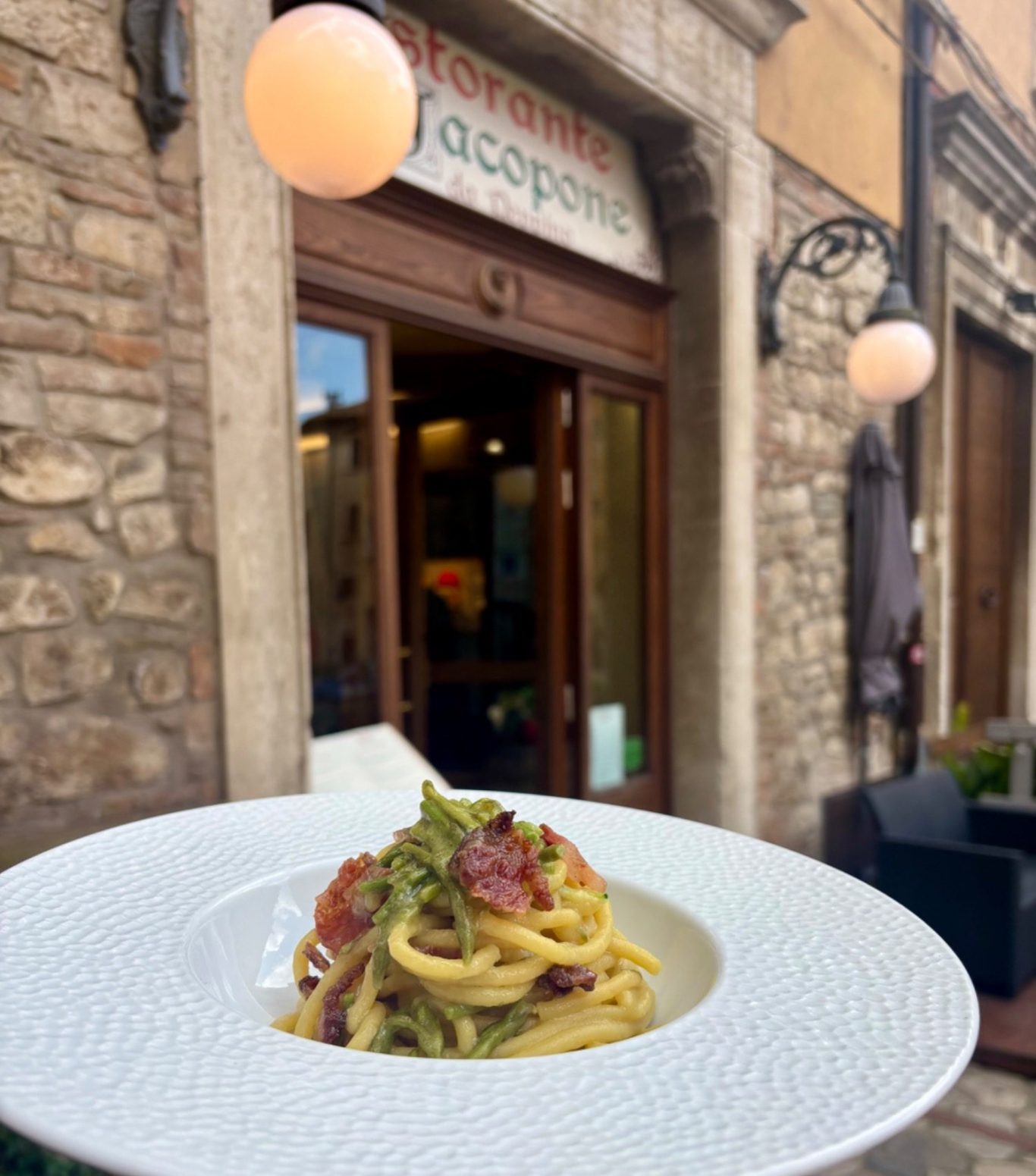 Siamo in Piazza Jacopone, nel cuore del centro storico di Todi.